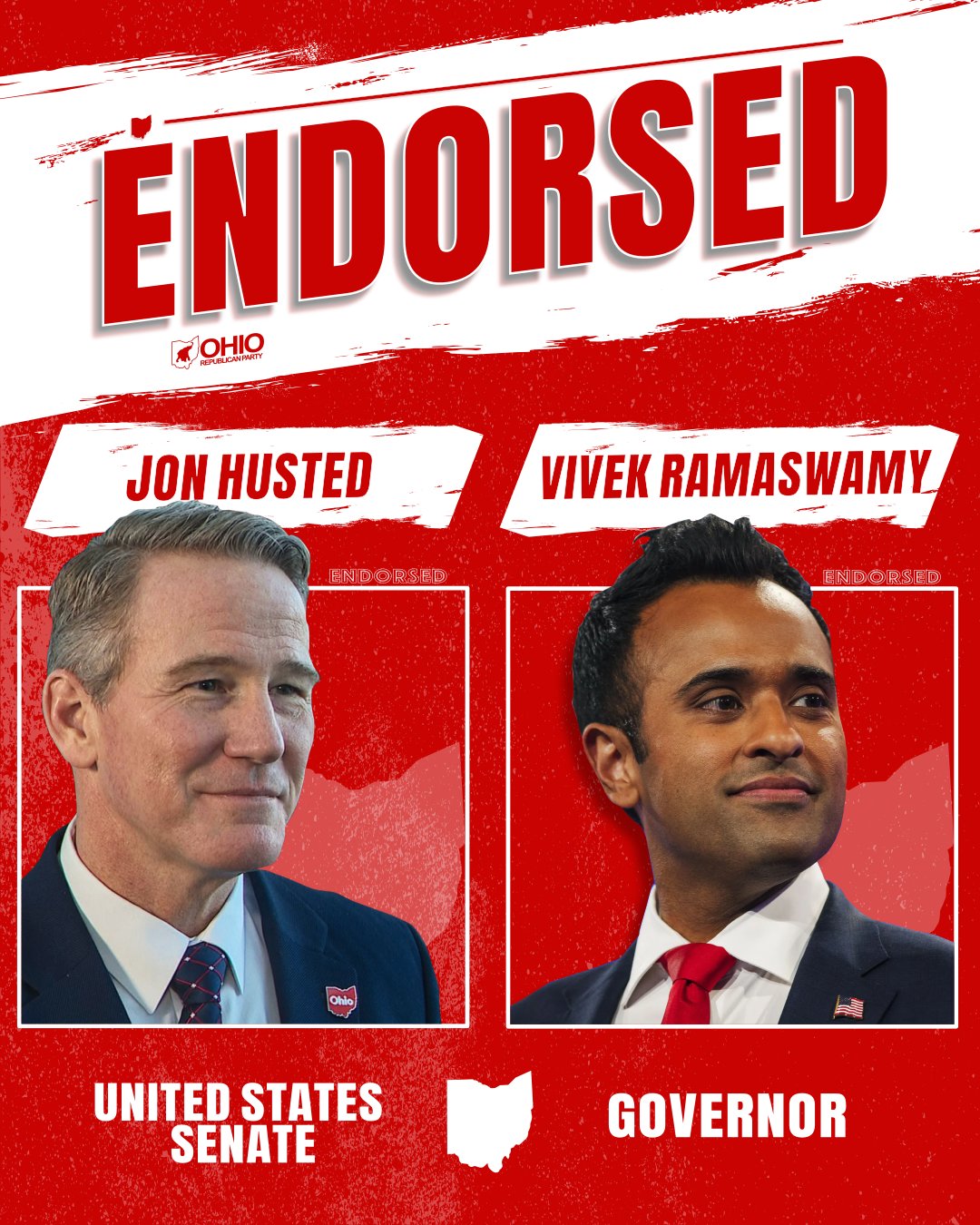 The Ohio Republican Party urges all voters to get involved, stay engaged, and support Husted and Ramaswamy in the 2026 election cycle. Together, we will keep Ohio red, strong, and on the path to greater opportunity.