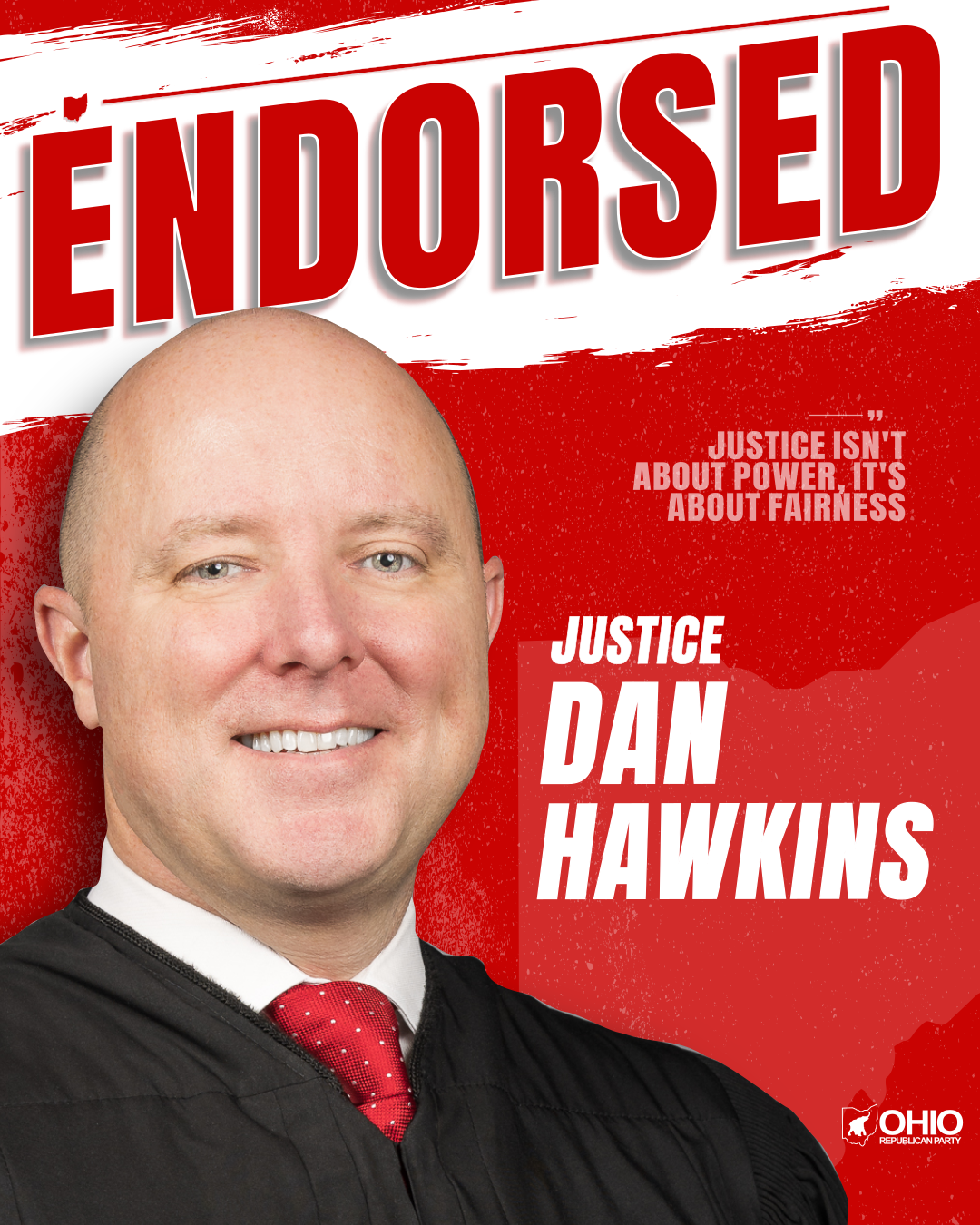The Ohio Republican Party State Central Committee proudly issued a unanimous endorsement for Justice Dan Hawkins to remain on the Supreme Court of Ohio. Justice Hawkins brings experience, integrity, and a deep commitment to fairness on the bench. I was proud to speak in support of his re-election, and I know our Party is united in the mission to keep a principled conservative voice on the state’s highest court.