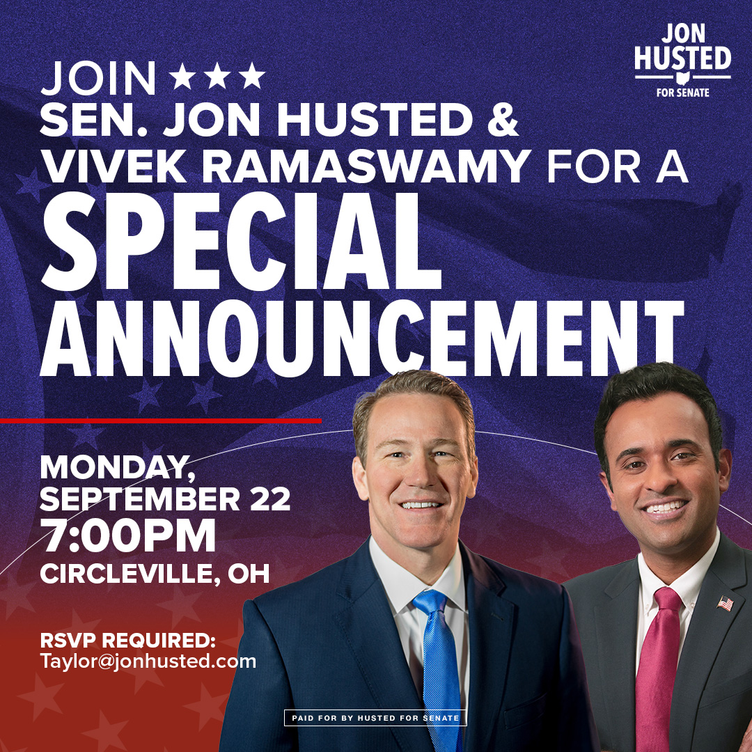 All of this energy leads to Monday, September 22, when we’ll gather in Circleville for a special announcement alongside Jon Husted and Vivek Ramaswamy. I hope you’ll join us for what promises to be a powerful night for Ohio Republicans.